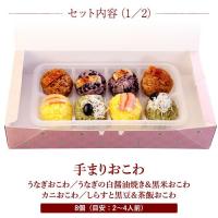 | ・手まりおこわ(33g)×8個 ・黒毛和牛そぼろおこわ(110g)×1食 ・ほたておこわ(110g)×1食 |