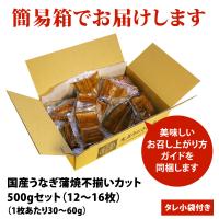 ■内容量:カット蒲焼き 500gセット(目安:12枚〜16枚入り/約5人前/1枚あたりのサイズ:30〜60g ※1枚のサイズにバラツキがあります)、タレ小袋付