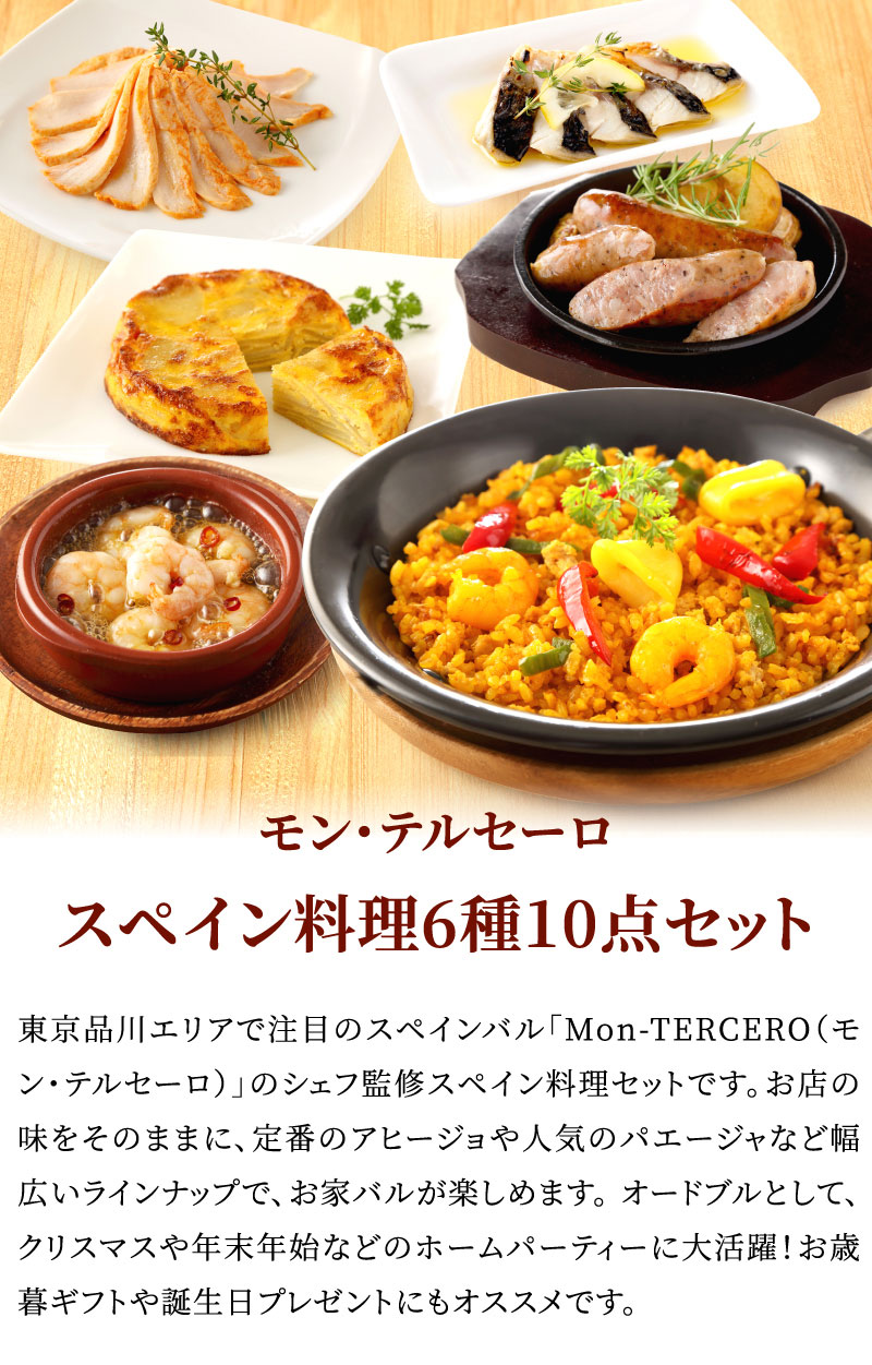 モン・テルセーロ スペイン料理6種10点セット グルメ ギフト 内祝い お祝い パエージャ アヒージョ コンフィタード ソーセージ オードブル
