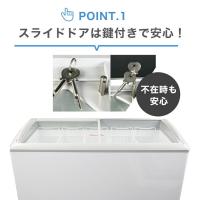 特徴 | ・上部スライド式全面ガラス扉で中身が見やすい ・ラウンド型デザインで対面販売にも適している ・ノンフロン製品だから環境にやさしい ・庫内温度がわかるデジタル温度表示パネル付き ・スライド式ガラス扉は鍵付きだから安心保管 ・4輪キャスター付きだから移動設置もラクラク ・内カゴ付きだから取り出しやすく陳列整理にも便利 ・100V 電源で温度調節はダイヤル7段階式 ・結露水は本体底部の水受け皿でキャッチ ・全機種鍵付きで安心保管 ・冷凍能力は−25℃以下(外気温30℃・無負荷平衝時直射日光受けず) |
