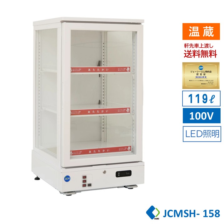 | JCMSH-158 | 横515×奥行553×高さ1000mm | 白色 | 119L | 54kg | 18〜55℃ |