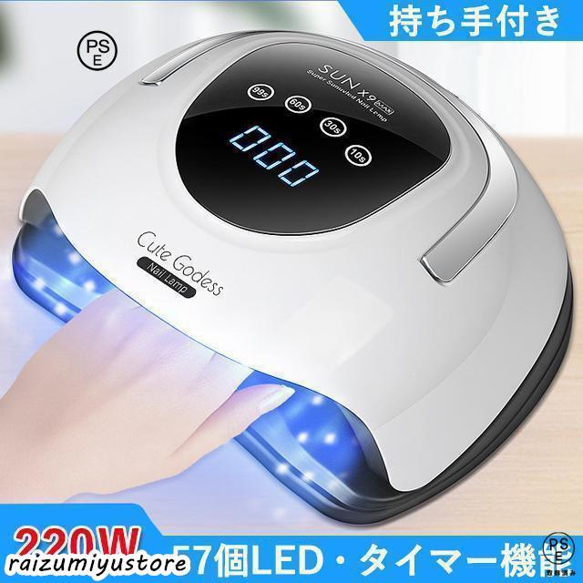 ネイルドライヤー ジェルネイルライト ハイパワ 220W 高速硬化 硬化用UVライト 57個led ネイル乾燥機 二重光源 人感センサー付き タイマー機能付き 手足両用