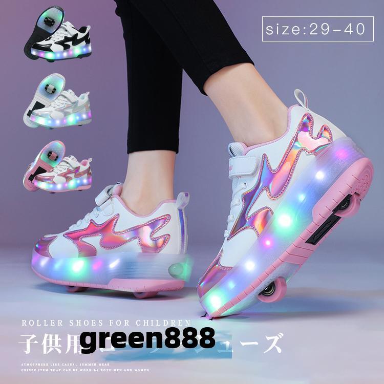 ローラーシューズ スニーカー 子供 2輪 led 7色照明 ローラーシューズ子供用 ローラースケート かかとボタン ヒーリーズ 23cm 男の子 女の子 USB充電式