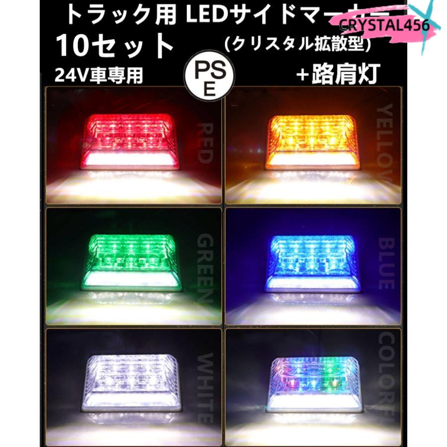 10個セット LED サイドマーカー サイドランプ 角型 24V トラック用 路肩灯 拡散レンズ サイドマーカー 白 レッド ブルー グリーン アンバー レインボー