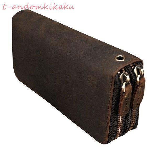 ラウンドファスナー長財布本革メンズレザー財布小銭入れ付きチェーン付き財布4室セカンドバッグダブル収納室携帯収納カード24枚収納大容量紳士