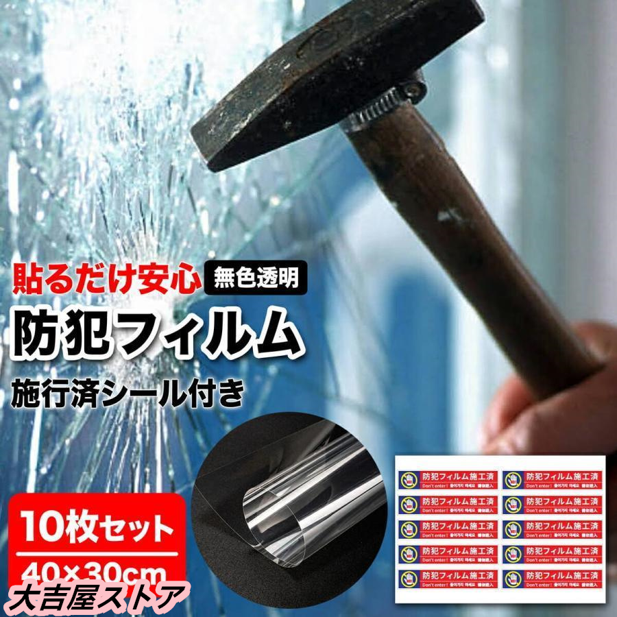 防犯フィルム 窓ガラス 飛散防止 フィルム 透明 40cm 300cm 防犯シート付き ガラス破り防止フィルム ガラス窓