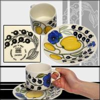 | 【パラティッシ イエロー】 「フィンランド陶芸界のプリンス」と称されるカイピアイネンがデザインしたパラティッシシリーズ。 植物の瑞々しく上品な美しさをとらえ、陰影のタッチまで細かく表現されたパターンは、国境を越え多くの人に愛され続けています。 ティータイムをちょっと優雅に素敵に♪大きめのカップは単体としても使い勝手抜群!ソーサーを小皿としても可愛い。 |