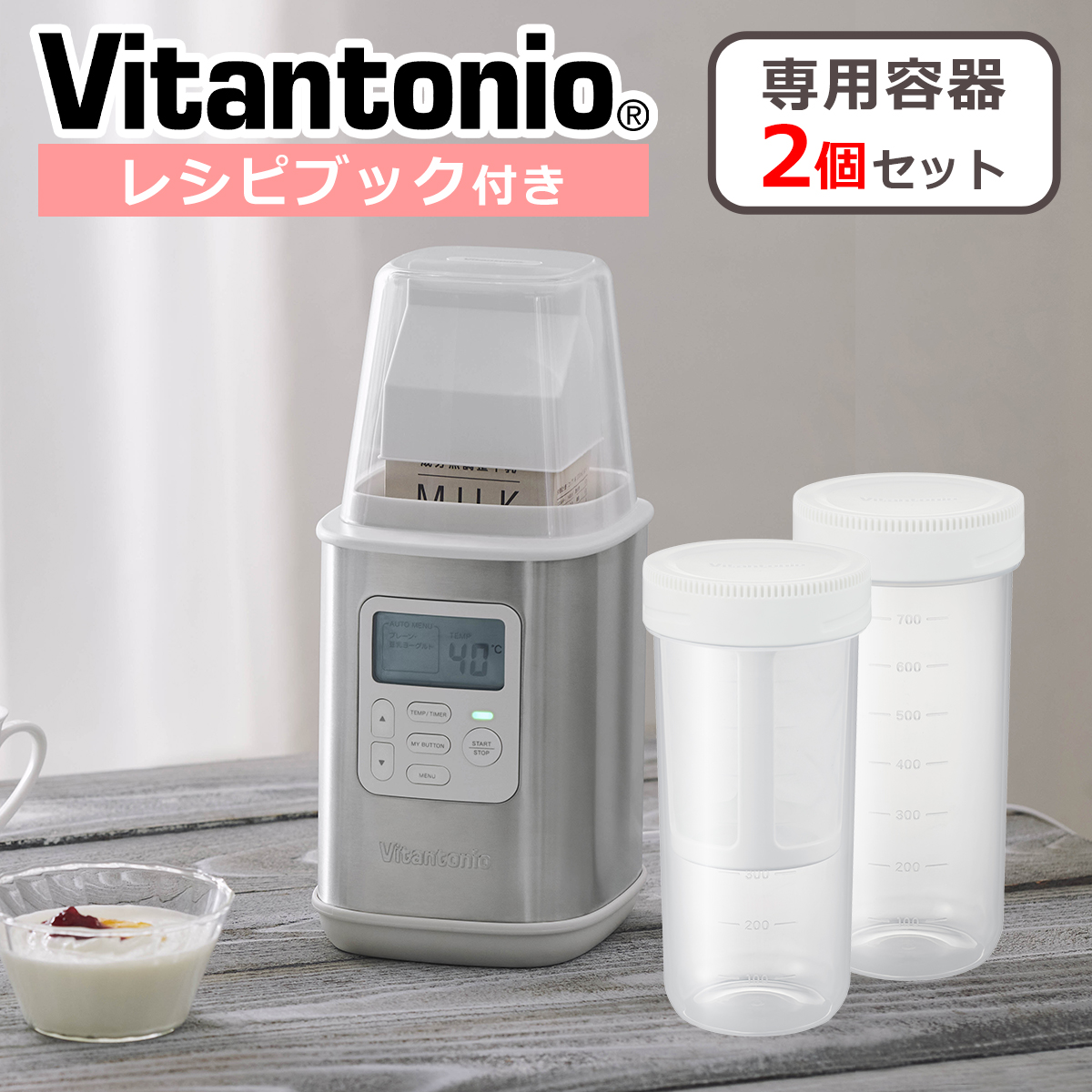 | ・容器 ×2 ・水切りフィルター ・牛乳パック用カバー ・スプーン ・カラーレシピブック ・取扱説明書 ・保証書付き(保証:1年[消耗品、部品交換等は除く])※当店では省資源化の観点から納品書を荷物へ添付しておりません。発送完了通知メールに納品明細を記載しており、当明細を納品書の代わりとしてプリントアウトし保管ください |