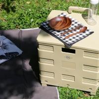 ![]() ふたを閉めるとちょっとしたテーブルや物置きになり、キャンプなどでも大活躍! | ||||