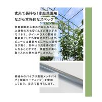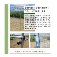 【※注意※必ずお読みください!】強風や風が強く吹く場所では、ダイムハウスが風で煽られ、吹き飛ばされる危険性がございます風の強い場所や強風が予想される際はすべてのビニールを取り外すか、お客様ご自身での風対策をお願いいたします仕様・特徴・シンプル設計で組み立て簡単!・シートは保温効果抜群の農業用ビニールを使用・亜鉛メッキパイプ(樹脂コーティング)を使用しているので、丈夫で長持ち・アンカー杭も付属しているので、土台もしっかり固定・側面ビニールの前後にはファスナーが付いており、開閉が簡単セット内容ダイムハウス ファスナータイプ 3坪用…1セット替えビニール…(屋根用・側面用)各1セットサイズ(約)