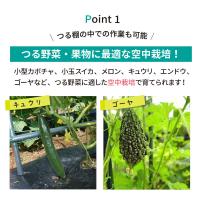 仕様・特徴・キュウリ、エンドウ、インゲンなどのつる野菜の栽培に適した棚支柱が簡単に設置できます。省スペースな空中栽培が可能です。