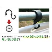 ・フックにハトメをひっかけ、支柱に取り付ければ作業が完了します。