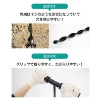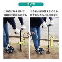 ・地面に突き刺し、時計回りに回転させることにより、穴をあけることができます。