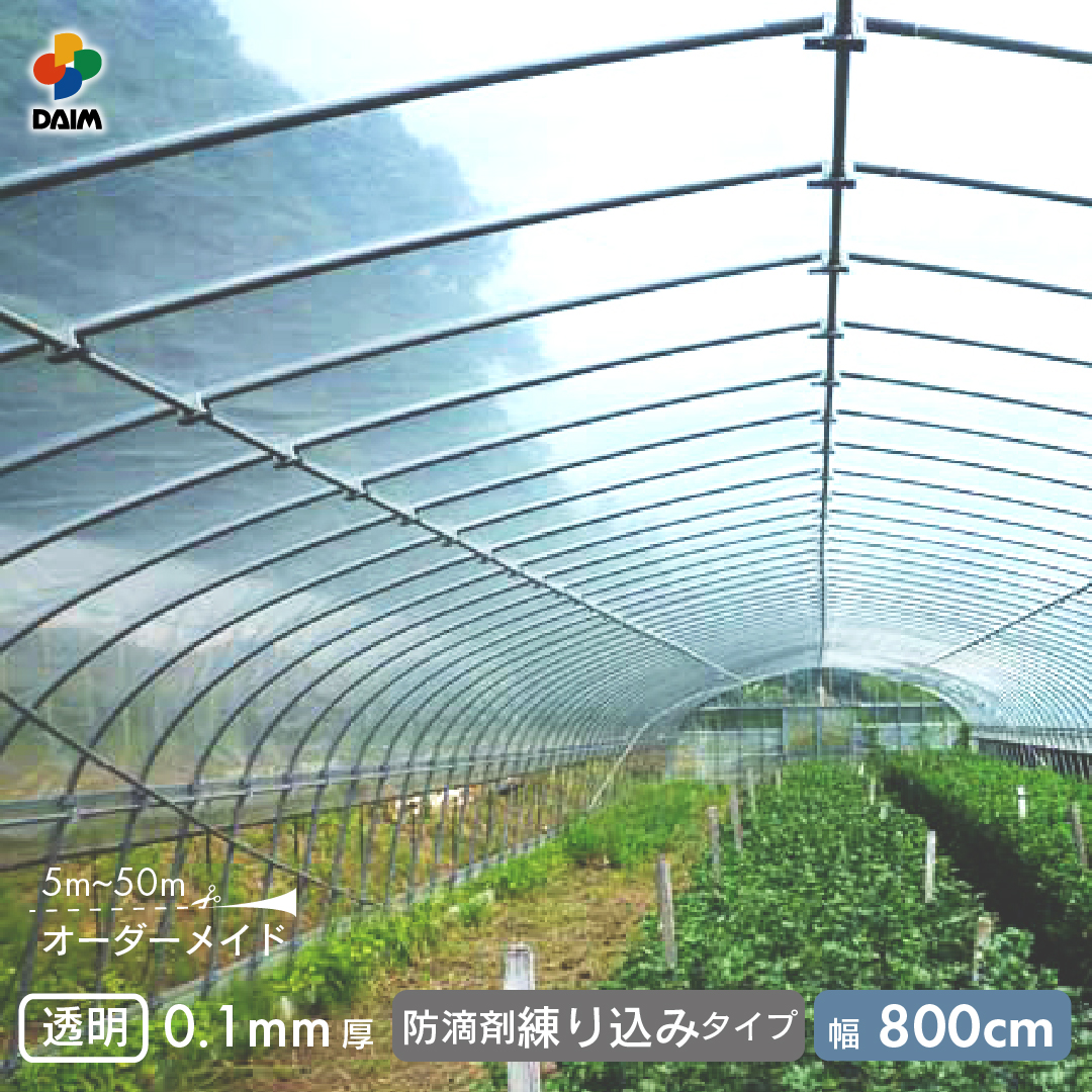 受注生産品 daim 農業用 POフィルム 透明 防滴剤 練り込みタイプ 0.1mm 800cm幅 m単価 5~50m 防霧 防滴 農PO オーダーメイド 農ポリ カット