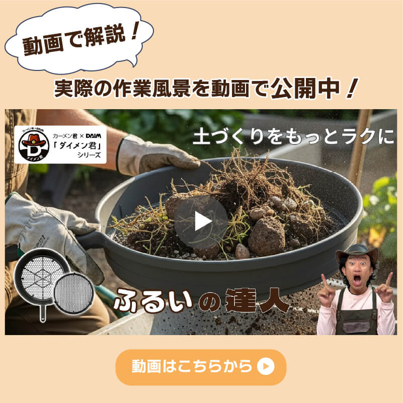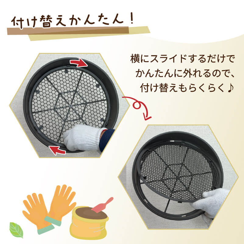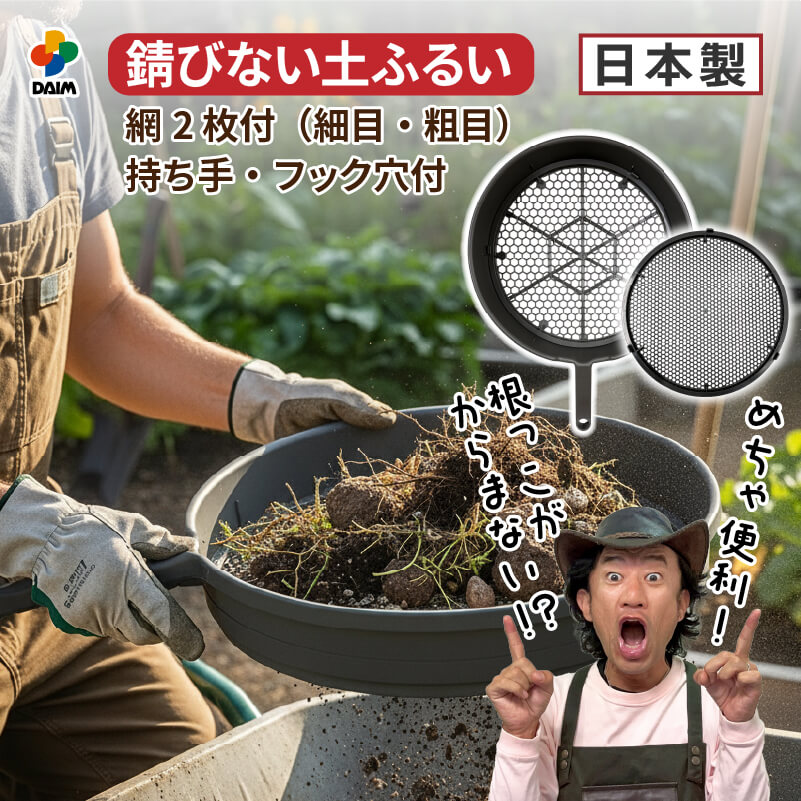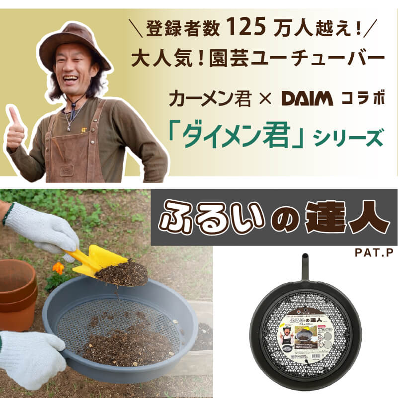 【カーメン君×daim コラボ】daim ふるいの達人 直径30cm 園芸用 土ふるい フルイ 用途別網2枚付 軽量 土作り 花壇作り 庭作り 家庭菜園 根 鉢底石 除去 植え替