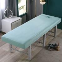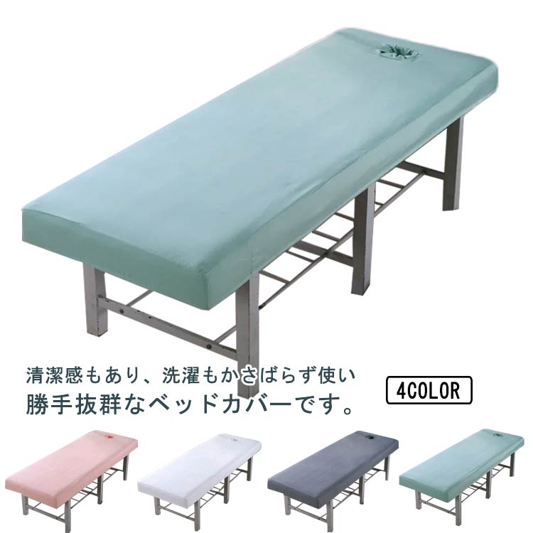 |  清潔感もあり、洗濯もかさばらず使い勝手抜群なベッドカバーです。 綿混生地で肌触りがより滑らかでシワもできにくく、通気性が良く。 生地に伸縮性があり、ボックスシーツタイプのゴム留め式なので装着も簡単。 フェイスホール用の穴が開いた有孔タイプです。  | |