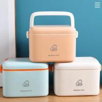 すぐに使える!便利な大容量薬ボックス 2段構造なので収納力も抜群、お持ちの救用品や常備薬を一緒に収納できます。 取っ手付きなので緊急時の持ち運びにも大変便利です。 遮光構造で薬をしっかり保管できます。 安全ロック付き、子供にいる家庭も安心!角は丸くトリミングされているので安全です。 救急箱としてはもちろん、工具や裁縫道具、小物入れとしても大活躍します。 シンプルで生活感を押さえた可愛いデザイン、中身が見えないのでそのままお部屋に置いても、インテリアのジャマになりません。 | |