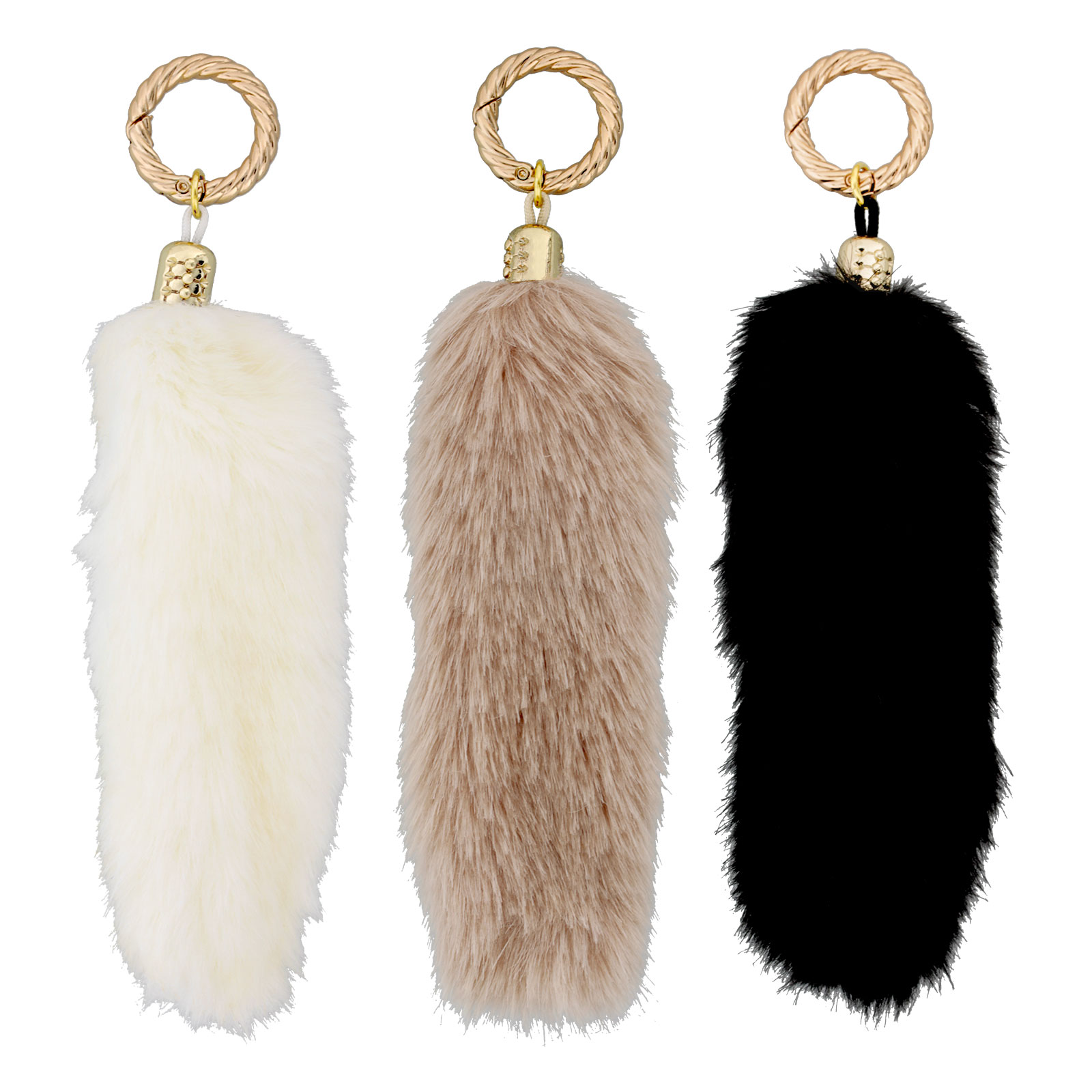 しっぽキーホルダー カラビナ付き エコファー 尻尾キーリング 15cm ファーアクセサリー Mサイズ 1個入り