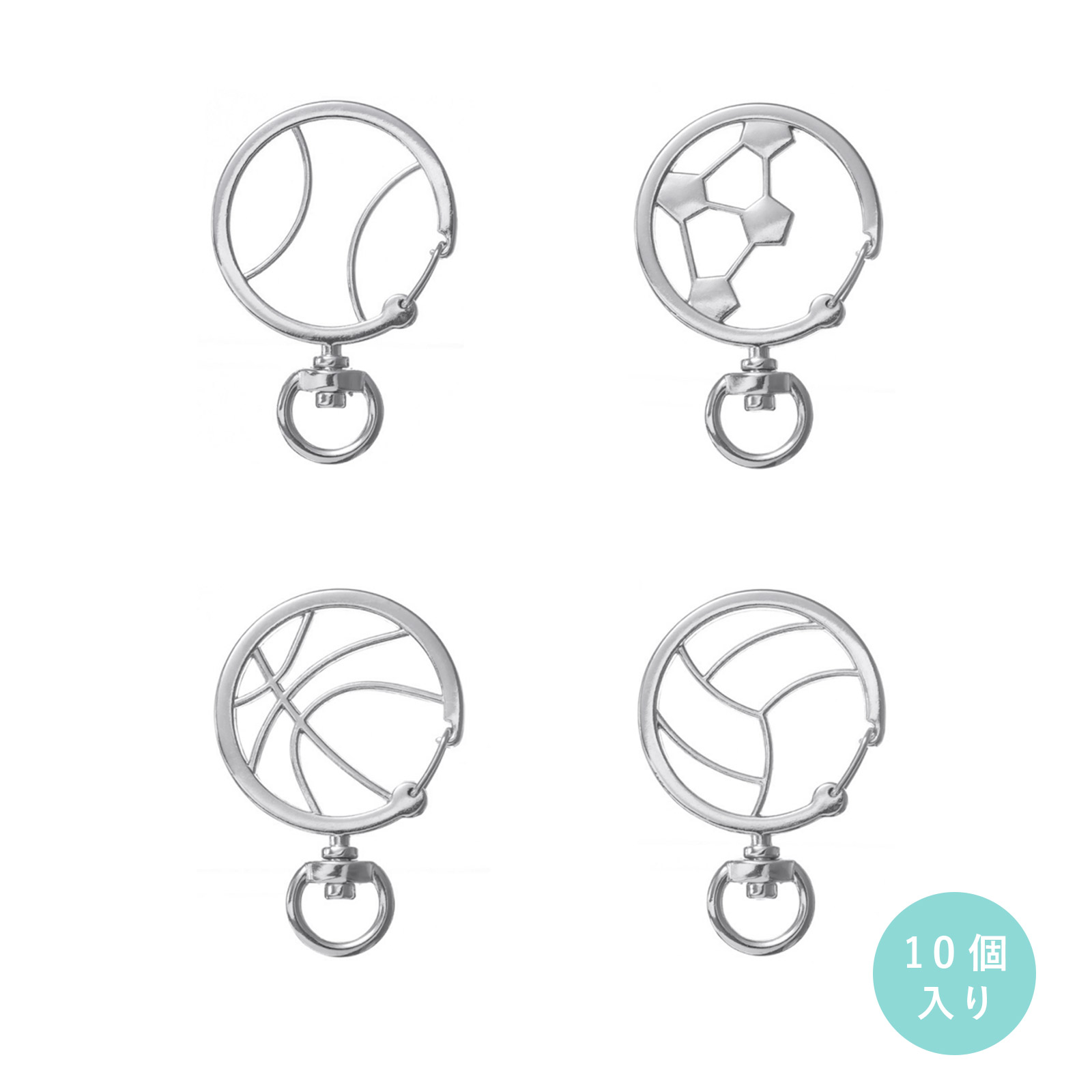 アミナスカン ボール型ナスカン 回転式 10個入 バスケット/サッカーボール/バレーボール/野球ボール キーホルダーパーツ シルバー ハンドメイド 手芸