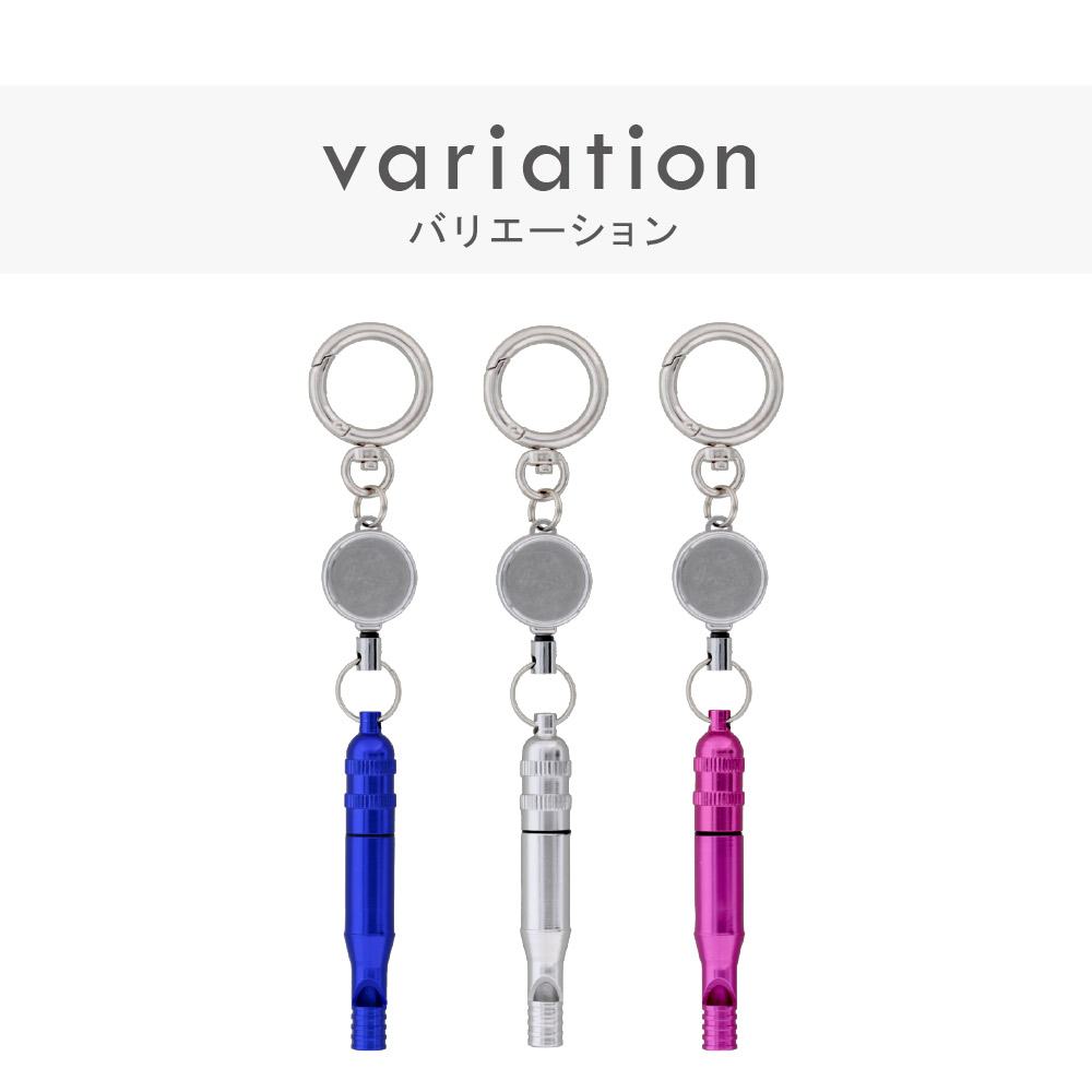 リールキーがついているホイッスルなので、バックパックや、ハンドバックはもちろん、