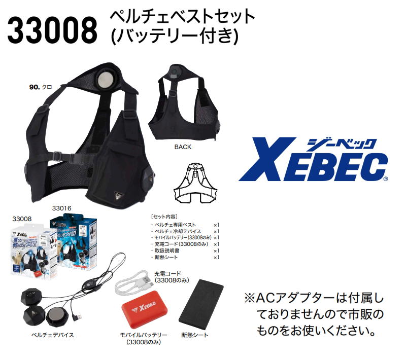 ペルチェ式 冷却ベストセット (バッテリー付き) ジーベック 春夏 33008 ポリエステル100% メッシュ 冷感ニット S M L LL 3L 4L 5L 6L XEBEC