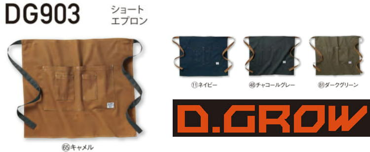 ショートエプロン DG903 フリー D.GROW クロダルマ KURODARUMA お洒落 大容量ポケット付き 飲食 DIY 軽作業 「ポスト投函」 送料無料 代引き不可