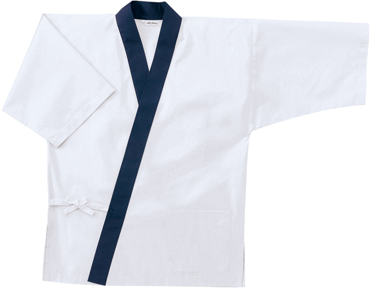 紺の襟がアクセントになっている白のジンベイです。