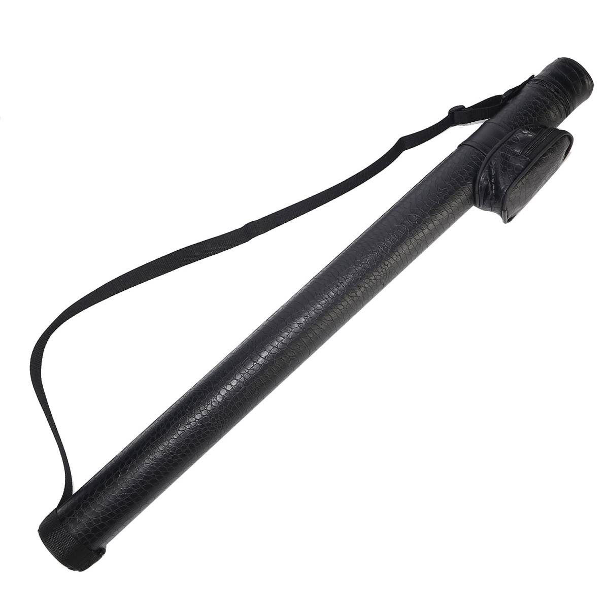 ビリヤードキューケース 円形丸型 ブラック黒 クロコダイル調 【1バット×1シャフト 770×65mm】 1×1 バットエンド挿入可 ポケット BY-4165