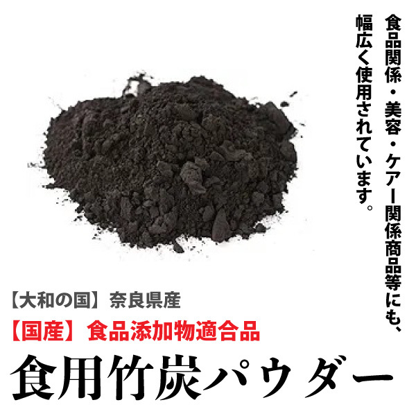 国産食用竹炭パウダー 【100g】 食品添加物適用商品 天然ミネラル・食物繊維 (奈良県産) 美容 無味無臭 竹炭 粉末 パウダー メール便送料無料【NTK】