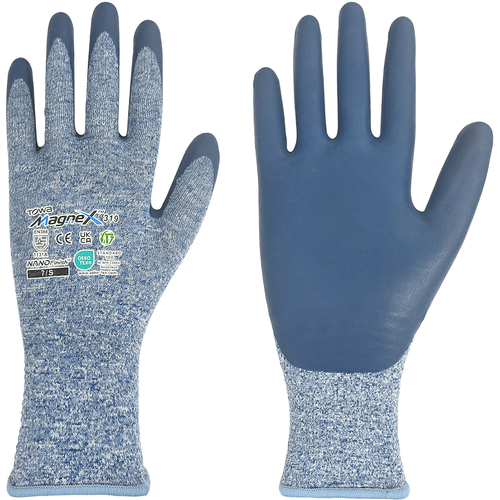 ・特長●ナノフィニッシュにより、DRY・WET両面でグリップ力を発揮します。●裏段編み加工を施した内面構造で、手袋内部での手のズレを軽減します。●表面の凹み微細化により目詰まりが起こりにくく、すべり止め効果の低下を抑制します。●原手部分には再生ナイロンを採用し、サステナブルな製品となっています。●ナノフィニッシュ加工は、揮発性有機化合物(VOC)含有率1%未満の環境に配慮した製法です。●サニタイズ抗菌防臭加工を施しており、汗のイヤなニオイを抑制します。●15ゲージとナノフィニッシュ天然ゴムコーティングの組合せにより、着けた瞬間にわかる柔らかさと抜群のフィット感があります。
