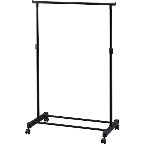 ・特長●ブラック塗装仕上げでインテリアに馴染みやすいパイプハンガーです。●安定感抜群で、たくさん掛けられます。●ハンガーパイプの高さは約87.5〜150cmの間で、無段階調整可能です。●服の丈に合わせて、ストッパーをゆるめて伸縮させ、高さを固定できます。●ハンガー下のスペースは収納物やボックスなどが置け、空間を有効活用できます。●キャスター付きで移動がスムーズに行えます。