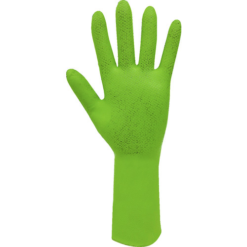 ・特長●ウロコ状の独自意匠により優れたグリップ力(水や油が付着しても強いグリップ力)を発揮します。●親指の内側までをすべり止め加工しているため、しっかり掴めます。●ニトリルゴム製による優れた耐油性、耐薬品性があります。●手首フィットのセミロングタイプです。