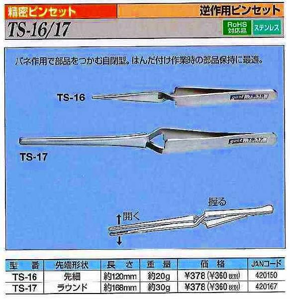 太洋電機産業 グット goot 逆作用ピンセット 大 TS-17 [94-420167]