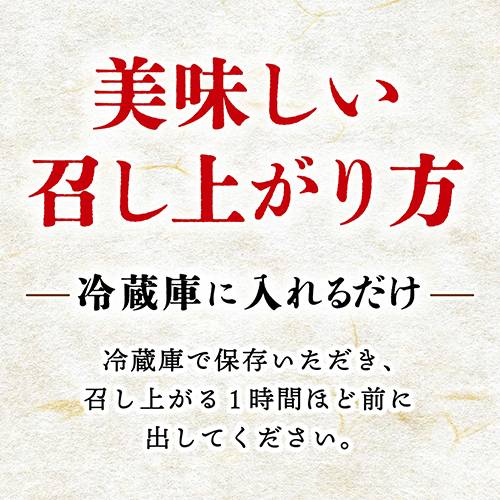 お召し上がりの1時間ほど前に冷蔵庫より出して頂くと美味しくいただけます。