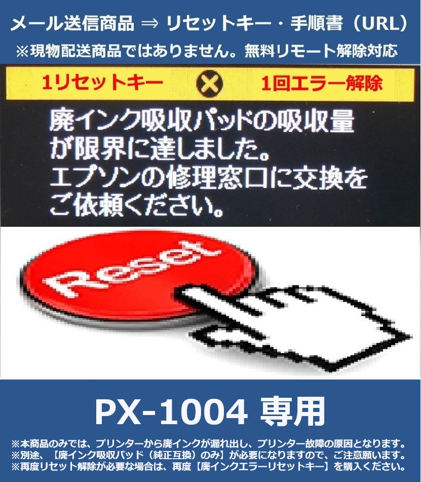 【廃インクエラーリセットキーのみ】 PX-1004 専用 EPSON/エプソン 「廃インク吸収パッドの吸収量が限界に達しました。」 解除キー