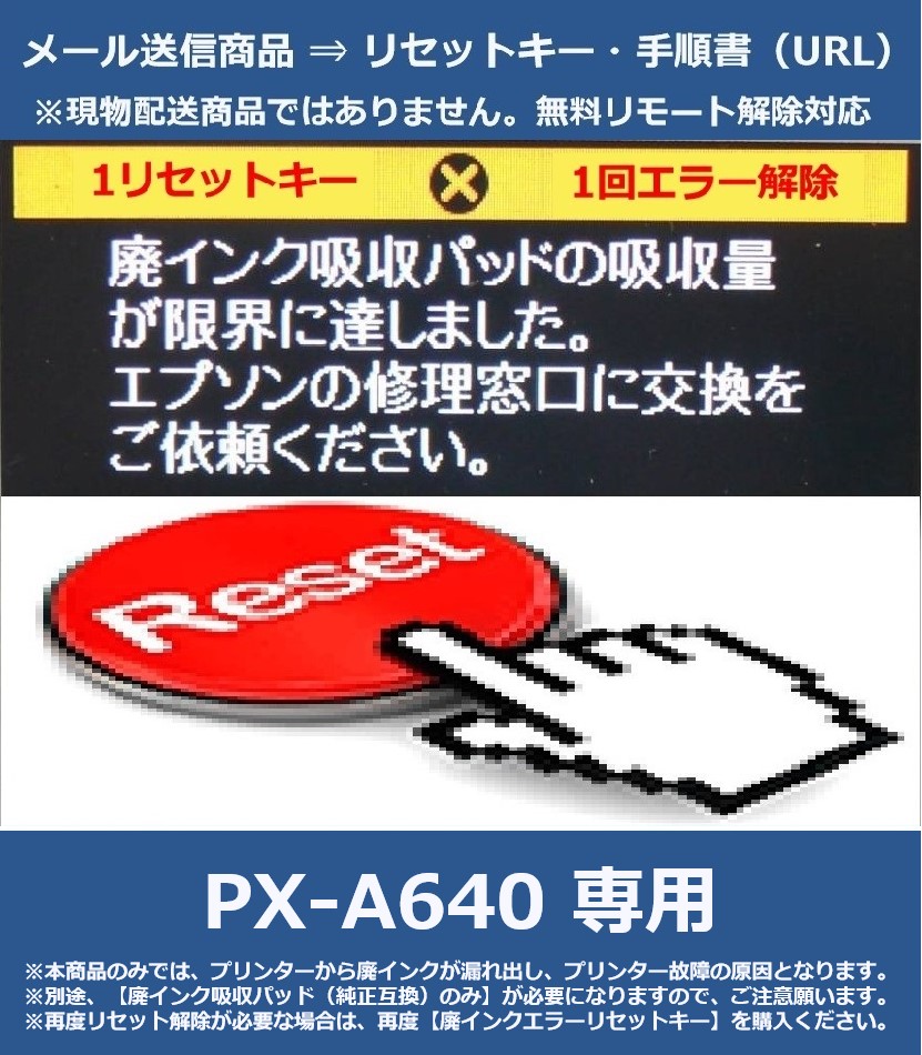 メーカー 商品名 | 【廃インクエラーリセットキーのみ】 「廃インク吸収パッドの吸収量が限界に・」のエラーが表示された場合の解除キー |