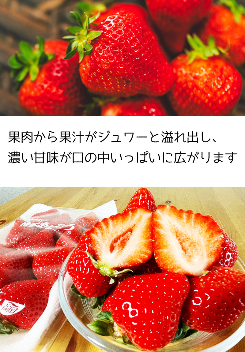 土づくりと温度管理を徹底し美味しさを最大限に引き出し、大粒で甘味のあるいちごに育ちました。