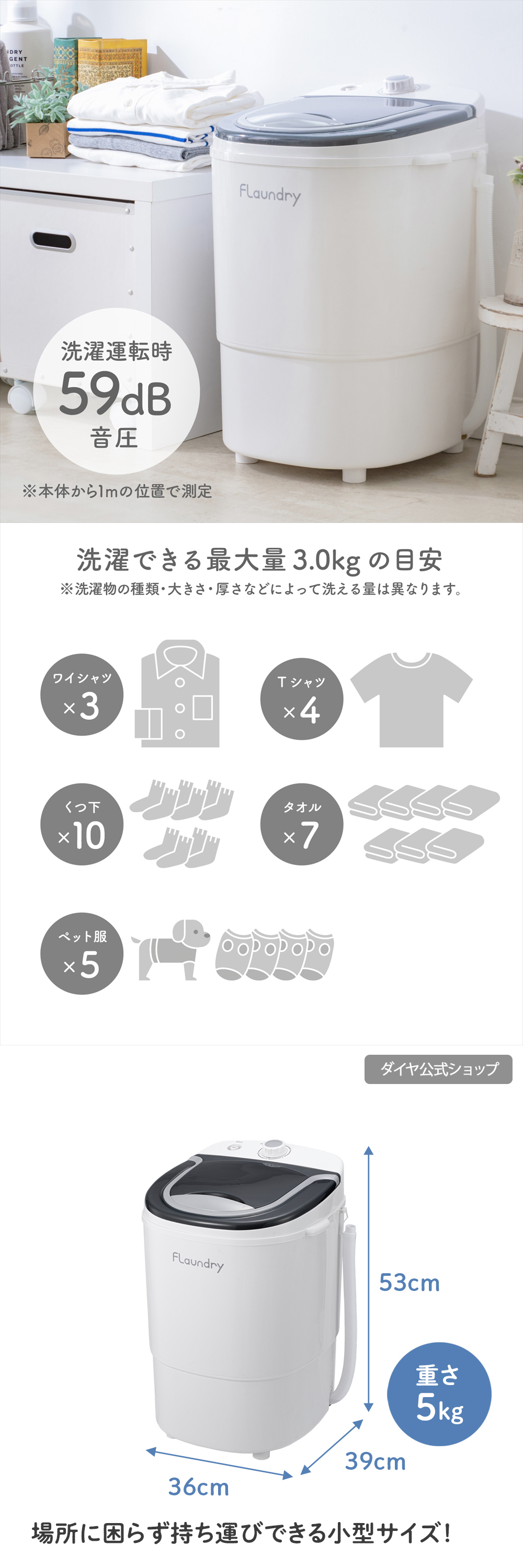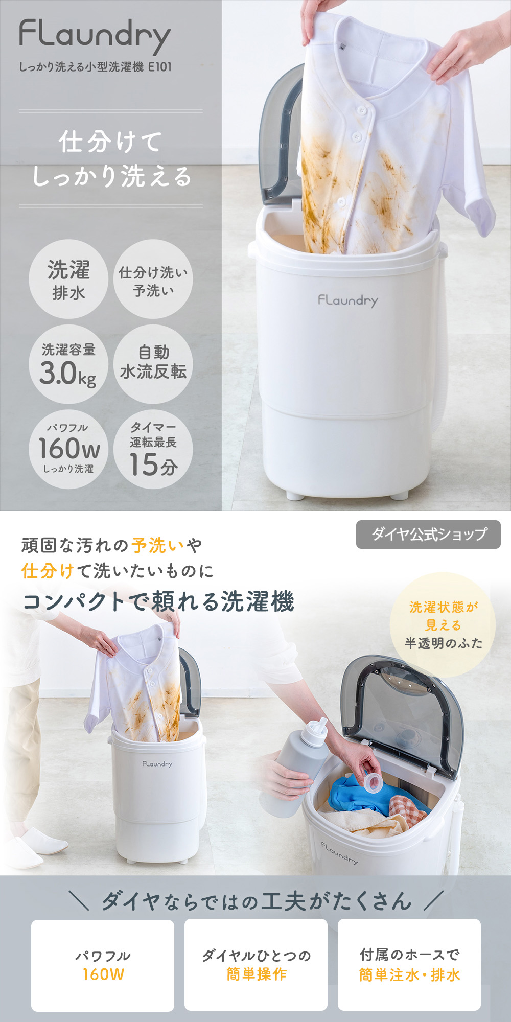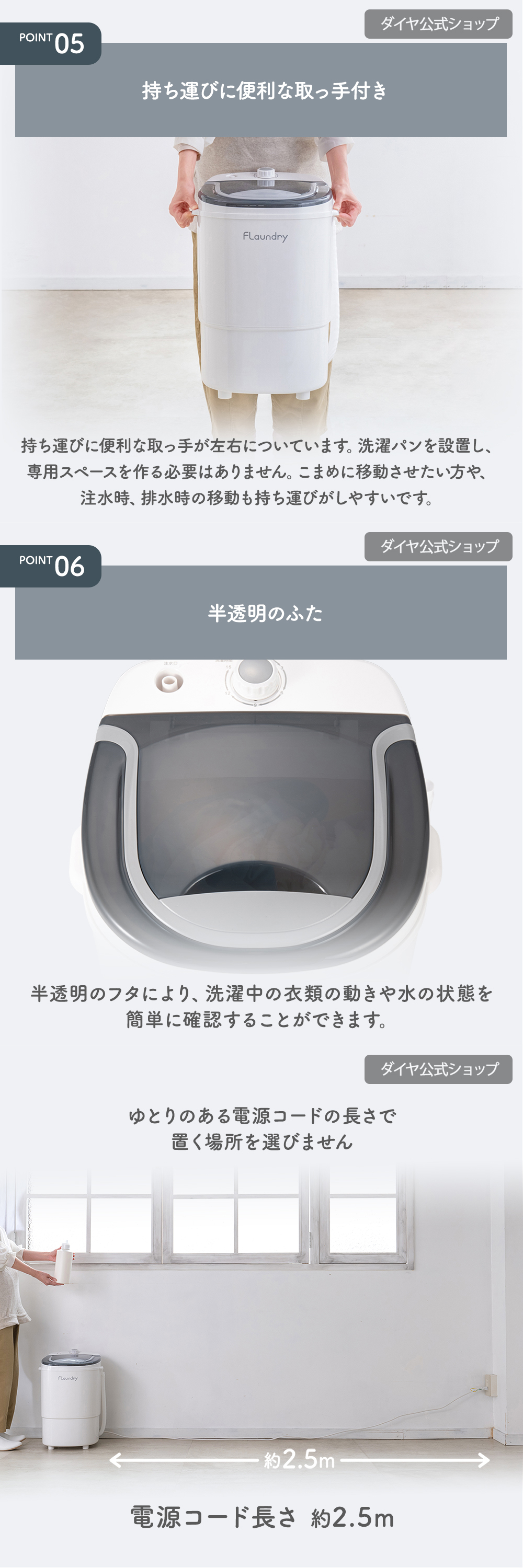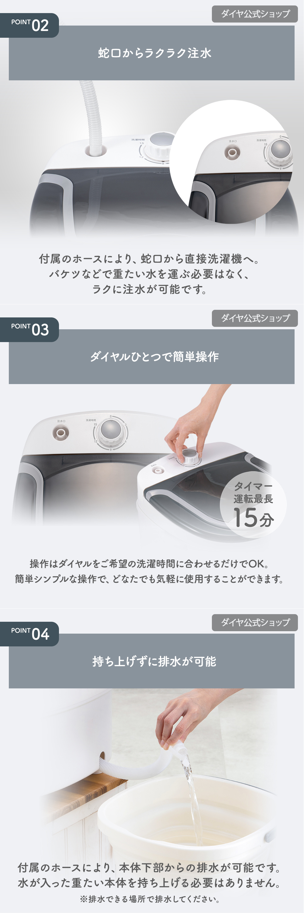 ●「洗濯」「すすぎ」「排水」機能を備えた小型洗濯機