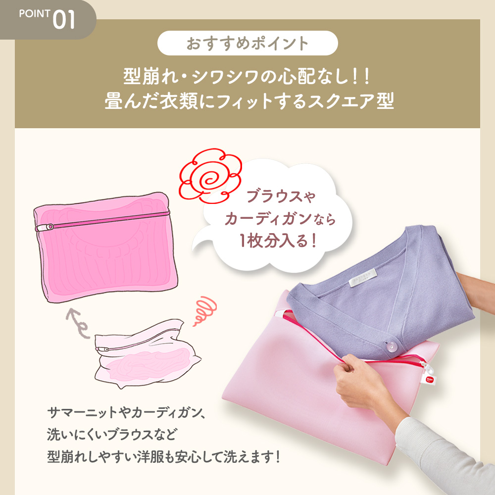 「手洗いはサボりたいけど、衣服をきれいにケアしたい」女性のための、おしゃれ着洗いに特化した洗濯ネットシリーズです。