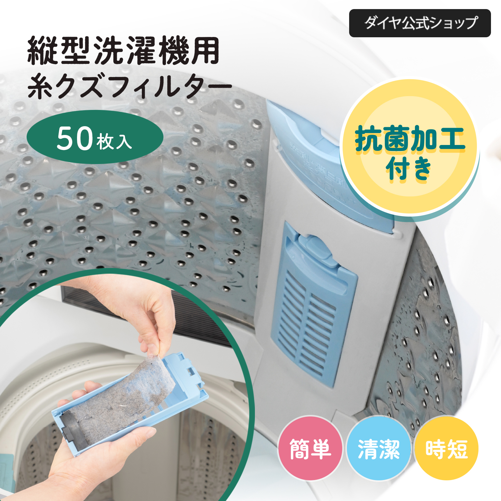 | ■ 商品特長 縦型洗濯機の糸くずフィルターに取り付けて使える、不織布タイプの使い捨てフィルター50枚入り。髪の毛やホコリをしっかりキャッチし、掃除の手間を大幅に軽減。抗菌加工付きでカビやニオイの発生も防ぎ、清潔に保てます。取り付け・取り外しも簡単です。 ●目の細かい不織布フィルター 目の細かい不織布のフィルターが、糸クズや髪の毛をキャッチします。 ●抗菌加工付き カビ・ヌメリ・ニオイ・雑菌の発生を抑え、清潔に保ちます。使い切りタイプなので衛生的です。 ●フィルターに合わせて簡単にカット ご使用の洗濯機のフィルターに合わせてぴったりサイズにカットでき、さまざまな洗濯機に対応します。 ■商品仕様 色:ホワイト 素材:ポリエステル 本体寸法:横約9.5cm×高さ約16cm 本体質量:約1g ■ 注意 ・ご使用の洗濯機の取扱説明書をよく読んでお使いください。 ・使用後にゴミがたまったら、本品を取り換えてください。 ・本品を使用した後、汚れたりゴミがたまったまま継続して使用しますと、本品の目が詰まり、水漏れや洗濯機のエラーの原因になります。再利用せず、定期的な交換をお勧めします。 ・本品が汚れたまま長期間使用しないでください。カビや水垢などの原因になります。 ・洗濯機のフィルター本体のサイズによっては、交換頻度が高くなる場合があります。また、洗濯物の量や衣類の種類によっては、一回の使用で本品にゴミがたまることがあります。 ・新しいフィルターに交換しても洗濯機にエラーが表示される場合は使用をおやめください。 |