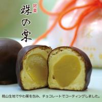 極柔炊きやわ栗を桃山生地で包み、チョコレートでコーティングしました。