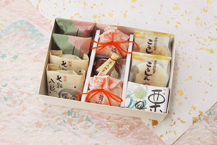 七転八起2個・しるべ2個・珠の栗2個・栗大納言1個・こうしん2個・栗最中1個