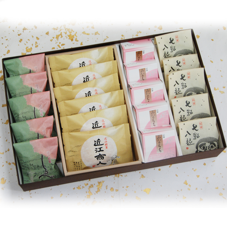 内容:しるべ5個/近江商人6個/みなくち5個/七転八起5個