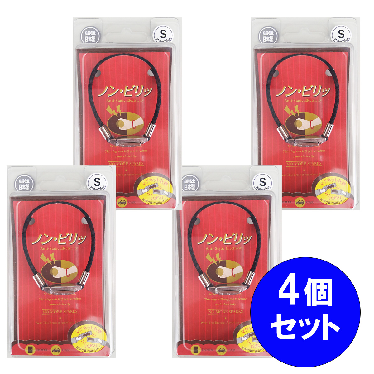 【まとめ買い】【在庫有】4個セット 静電気軽減アーム ミサンガ 無地黒 S ノン・ビリッ 品質 安全 日本製 マグネット仕様