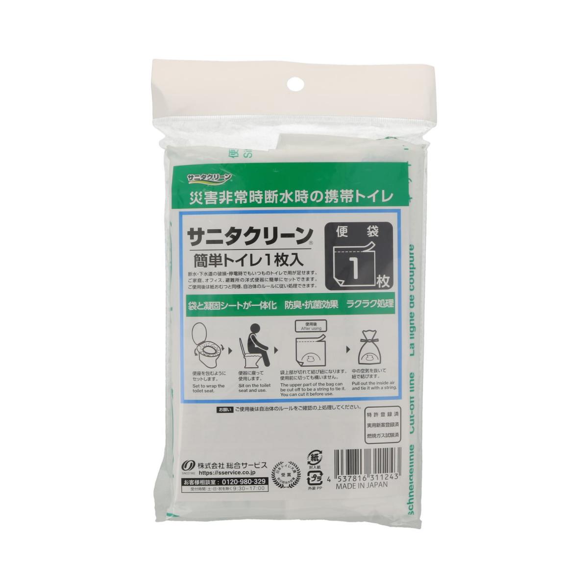 総合サービス サニタクリーン 簡単トイレ 1枚 凝固シート トイレ 簡易トイレ 便尿 おう吐物 おう吐 凝固 凝固剤 防臭 防疫効果 災害 避難 防災 防災用品