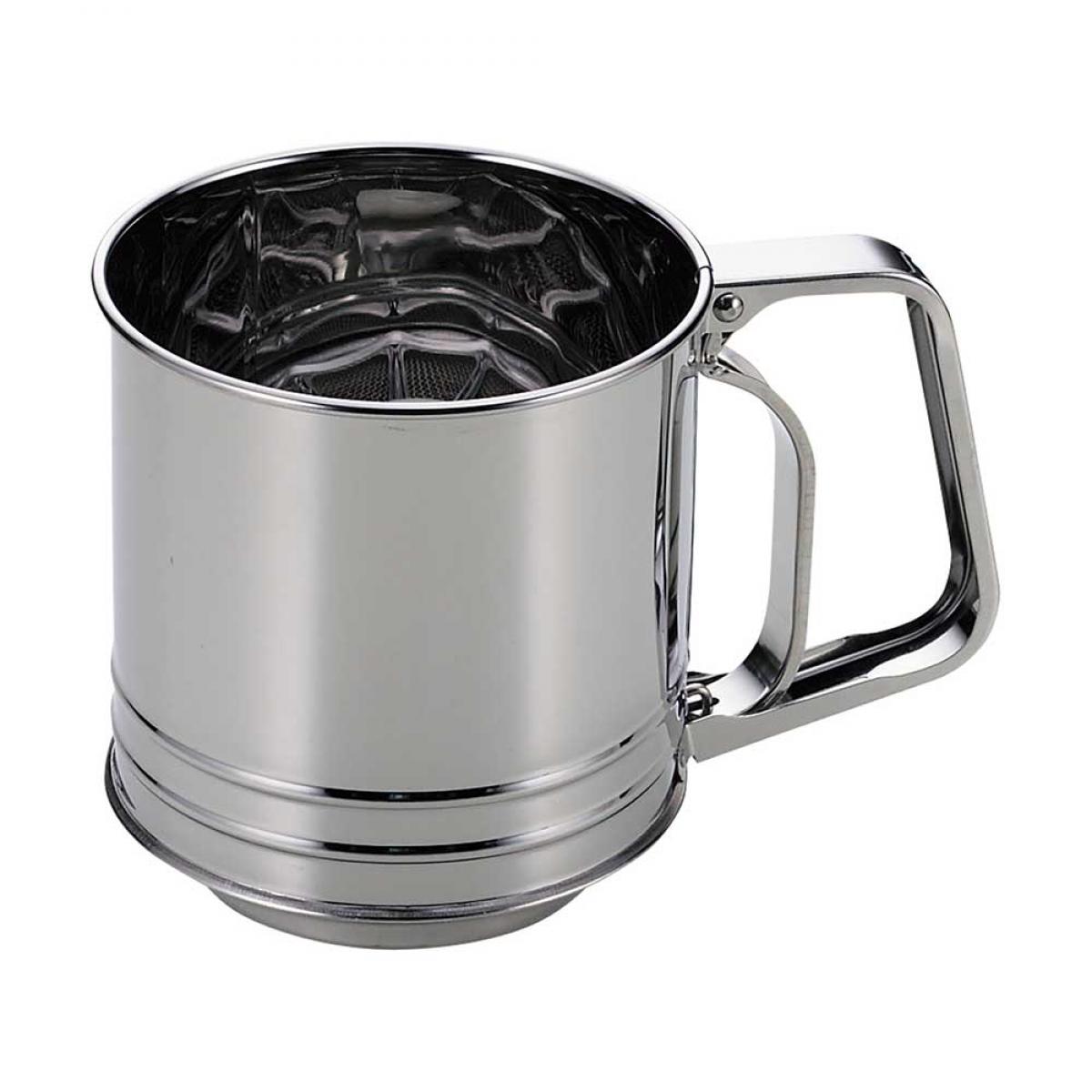 ステンレス製粉ふるい。片手でラクラクふるえます。