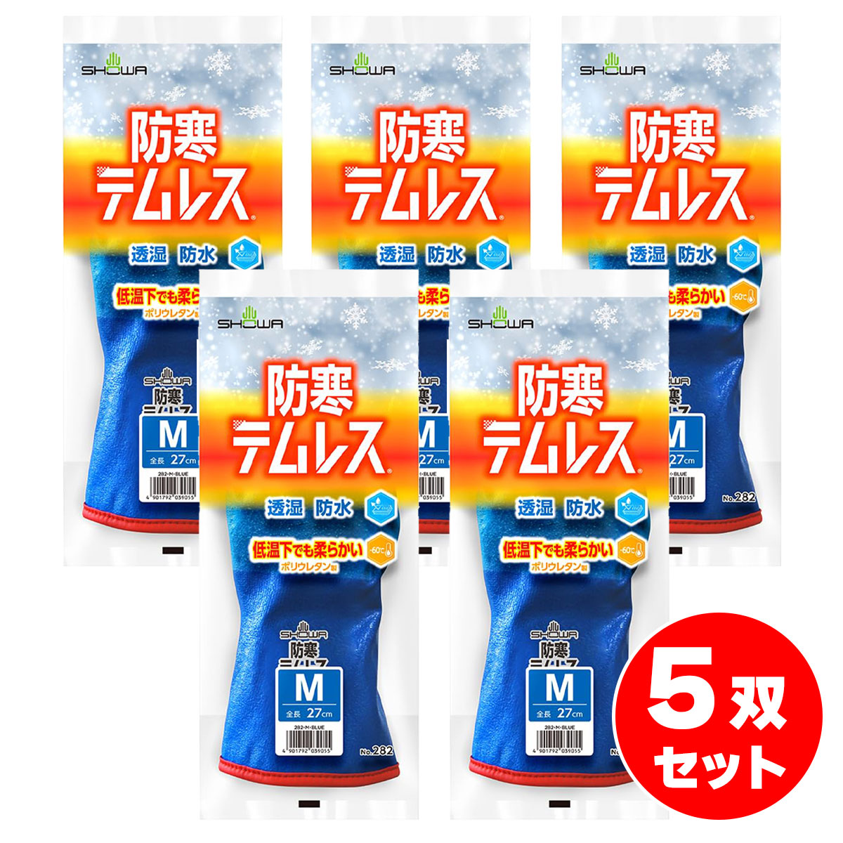 【在庫有・即納】【まとめ買い】防寒手袋 防寒テムレス ブルー Mサイズ 5双セット No.282 テムレス ショーワグローブ