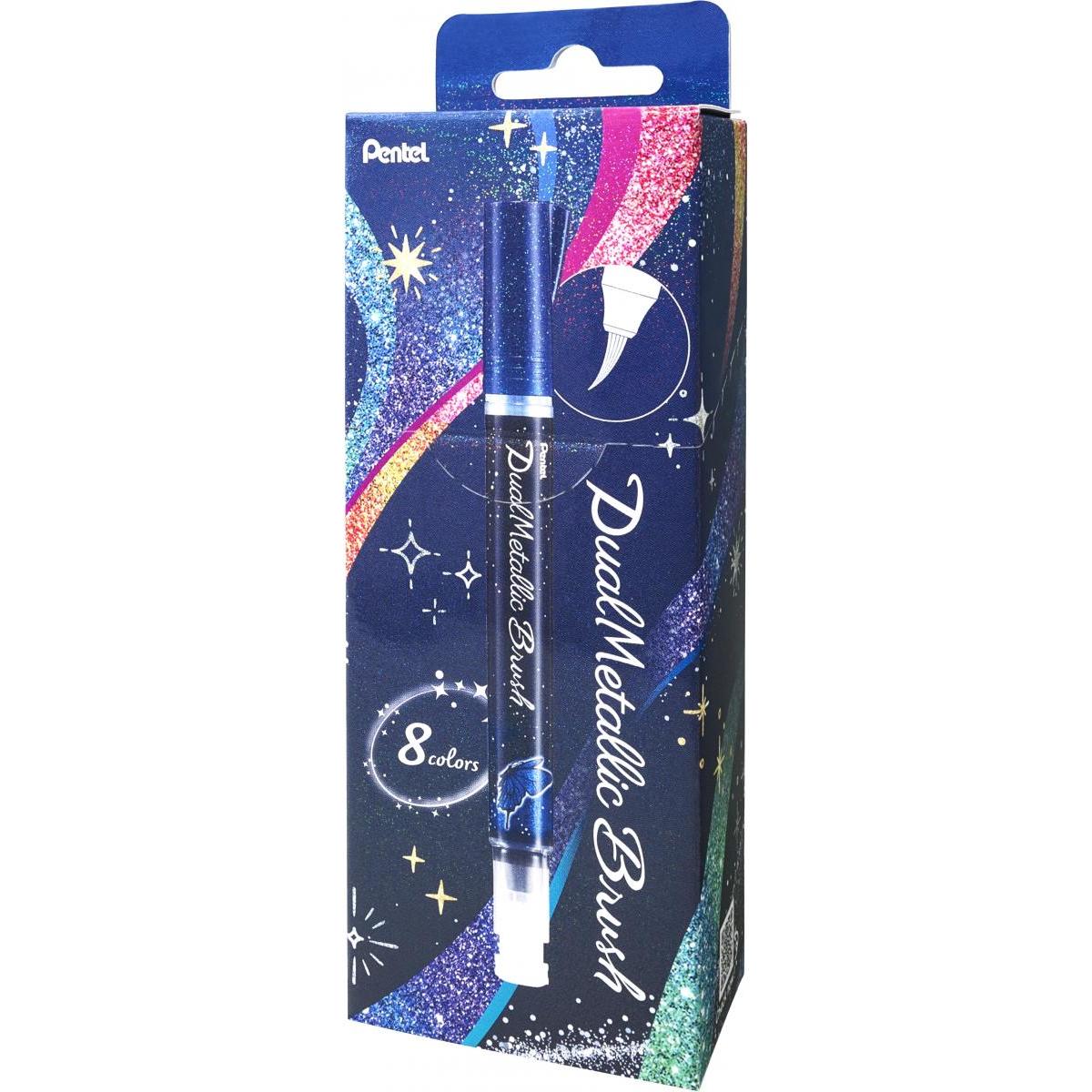 【在庫有】Pentel(ぺんてる) デュアルメタリックブラッシュ 8色セット GFH-D8ST ラメ筆ペン カラー筆ペン メタリック 毛筆【日時指定・代引不可】
