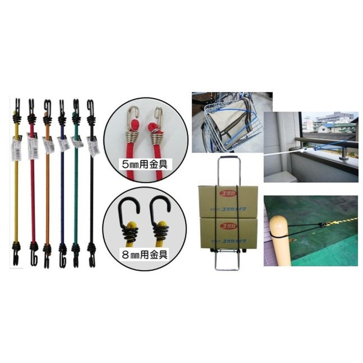 両端に引っ掛け金具付きの丸ゴムロープ。 BC81211 8X1200