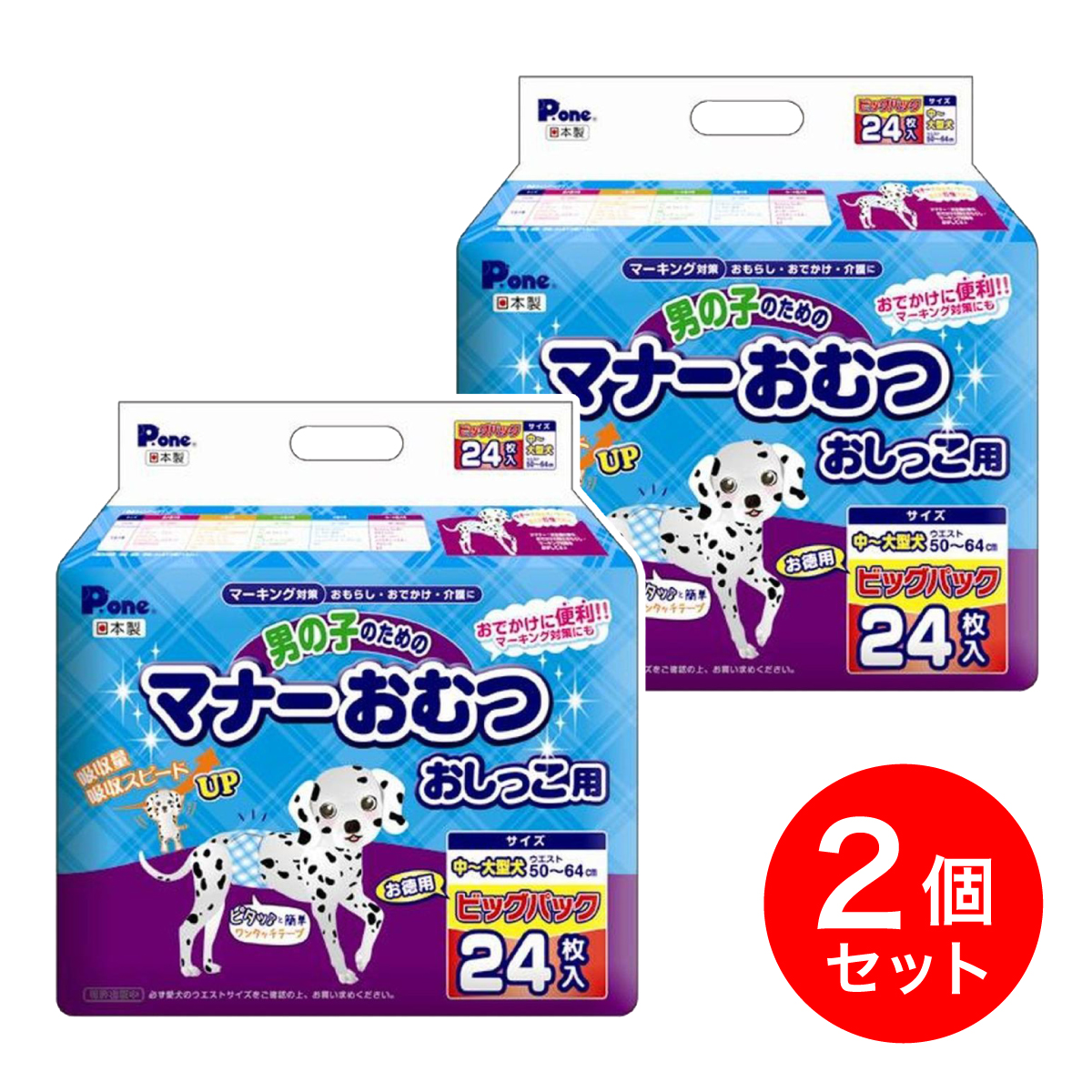 【在庫有・即納】 【まとめ買い】P.one 第一衛材 男の子のためのマナーおむつ おしっこ用 ビッグパック 中〜大型犬 24枚入×2個 PMO-709 犬 おむつ おもらし